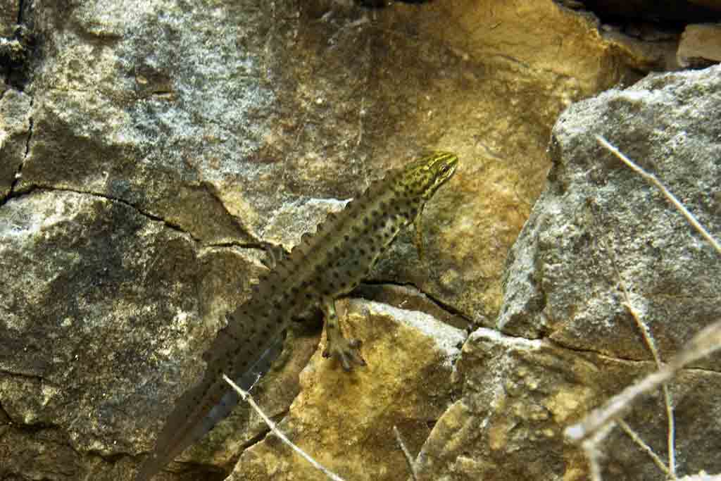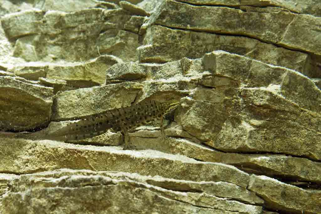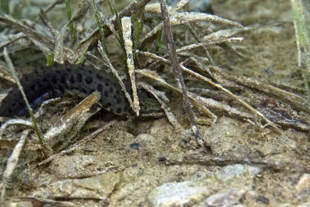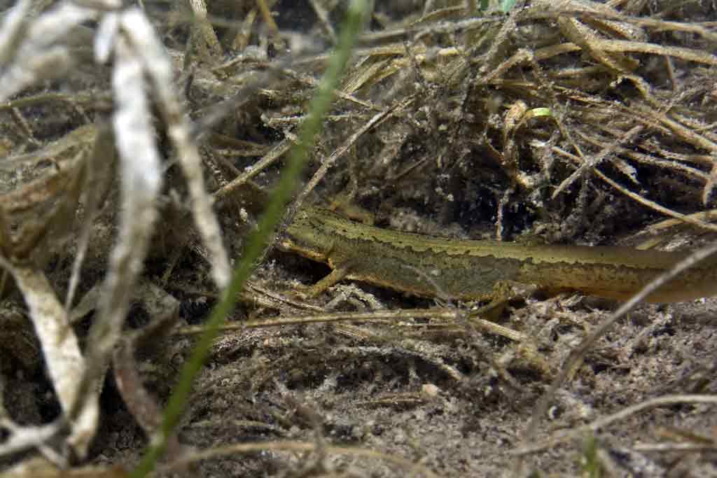 Heute war ich wieder dort, aber in den Vormittagsstunden waren erheblich weniger Molche zu sehen und wiederum kein Fisch. Angeblich gibt es auch Bergmolche dort.