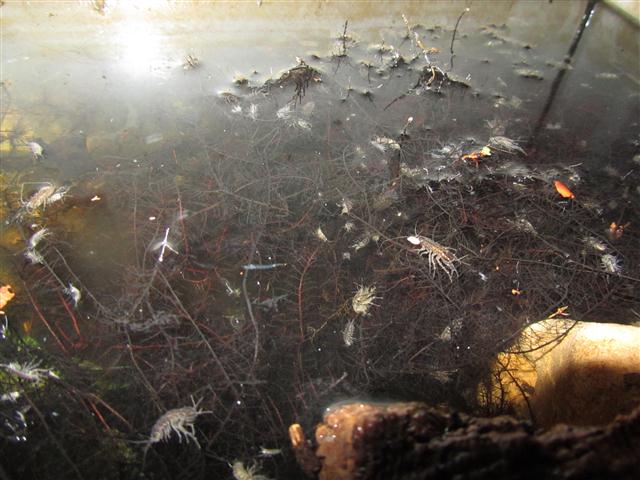Wasserasseln hingegen habe ich reichlich gefunden. Neben dem Bach war eine kleinere Wasserstelle, in die schon jede Menge Laub gefallen war, welches sich schon zu zersetzen begann. Klar, die Wasserqualität war alles andere als gut, das war wohl auch der Grund, warum die Tiere da so zahlreich anzutreffen waren. Zu diesen Tieren wollte ich nur wissen, ob sie schon jemand gezüchtet hat. Ist dies aufwendig?
