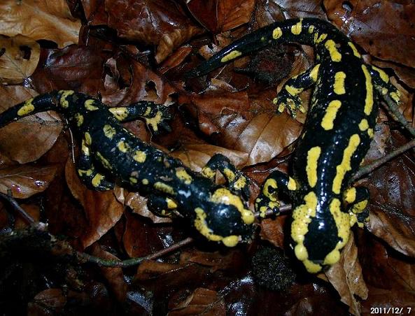 dieses Salamanderpaar habe ich am Mittwoch (07.12.11) im kalten Mülheimer Wald fotografiert - trächtiges, massives Weibchen und schmales Männchen.