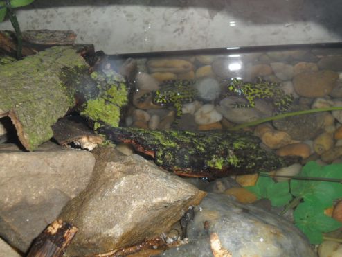 wie kommts, dass die Unken in so einem hohen Terrarium hausen? Dir ist sicher bewusst, dass sie nicht grad arboreal lebende Tiere sind, wie Philip schon angedeutet hat. Gönn ihnen doch lieber ein bisschen mehr Grundfläche.