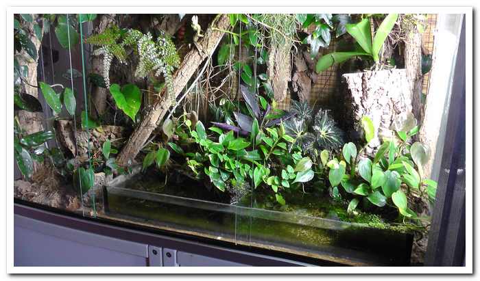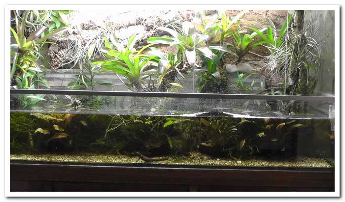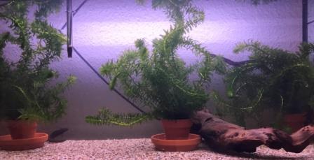 Ich füttere viel Regenwürmer. Die können sich nicht mehr im Kies vergraben. Auch die Reinigung dürfte dann etwas einfacher sein. Die Pflanzen habe ich in kleine Tontöpfe mit Kies gepflanzt. Damit die Töpfe nicht umkippen habe ich mit Silikon an die Töpfe eine kleine Schale geklebt.