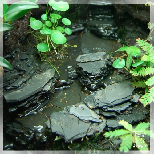 Da Feuersalamander aber Bachläufe gewöhnlich nur für die Larvenablage aufsuchen, finde ich das in einem normalen Feuersalamander-Terrarium verzichtbar. Zur Larvenablage genügt auch ein normales Wasserteil, das dann auch weniger schwierig zu reinigen ist.
